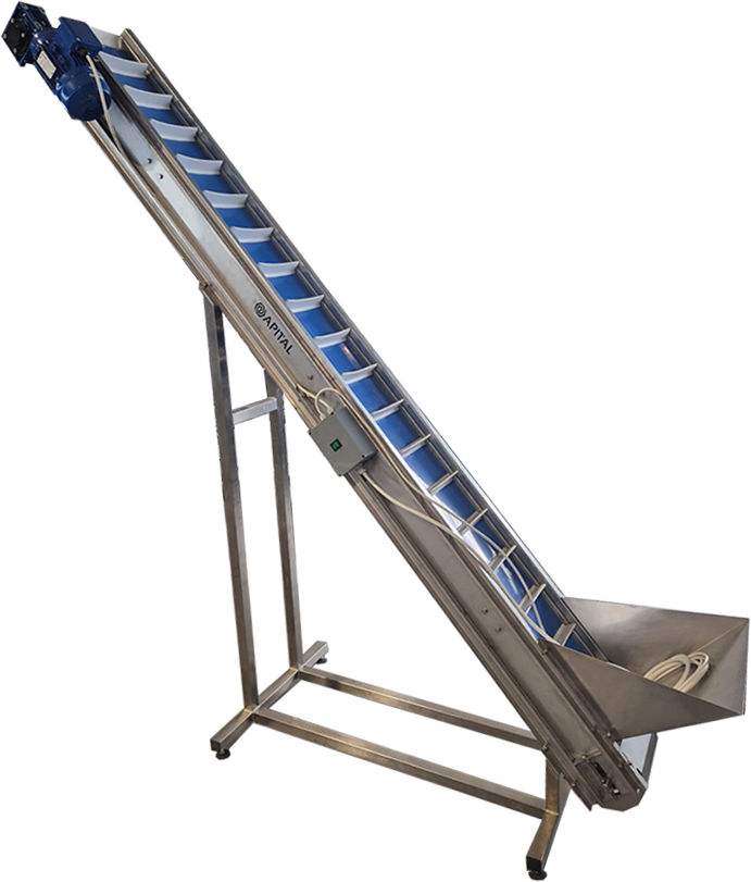 ELEVATOR je osmišljen za učinkovit i siguran transport sirovina do pakirnih ili preradbenih sustava. Izrađen je od visokokvalitetnog nehrđajućeg čelika, a pokretna traka s pregradama osigurava sigurno podizanje sirovina bez oštećenja.