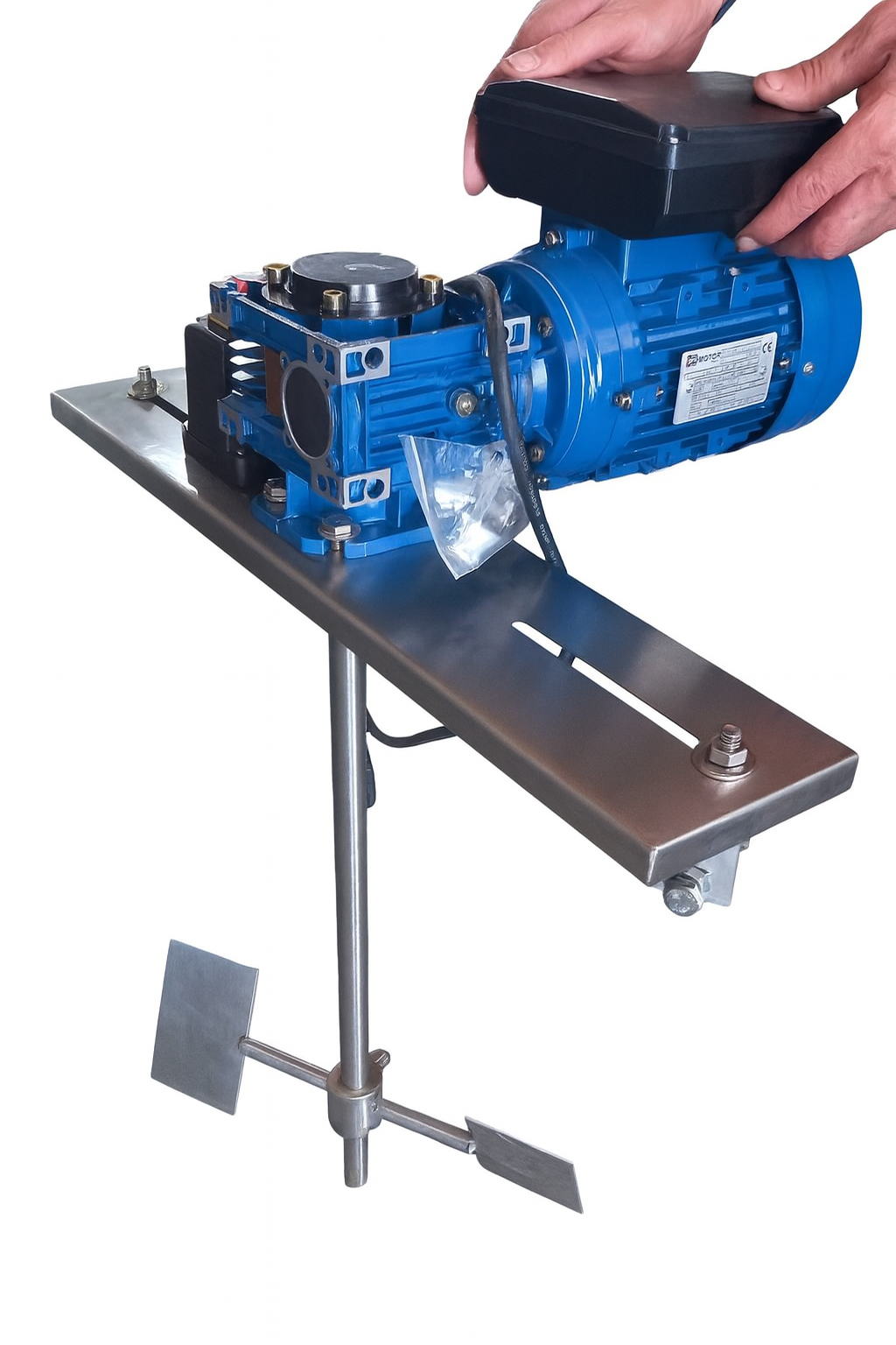 MIJEŠALICA ZA RAZLIČITE TEKUĆINE omogućava brzo i učinkovito miješanje tekućina. Miješalica je opremljena elektromotorom snage 0,55 kW, koji osigurava stabilan i snažan rad. Fleksibilni prihvat od nehrđajućeg čelika prilagodljiv je za posude i bačve različitih dimenzija, što omogućava široku primjenu u različitim uvjetima i s različitim vrstama posuda.