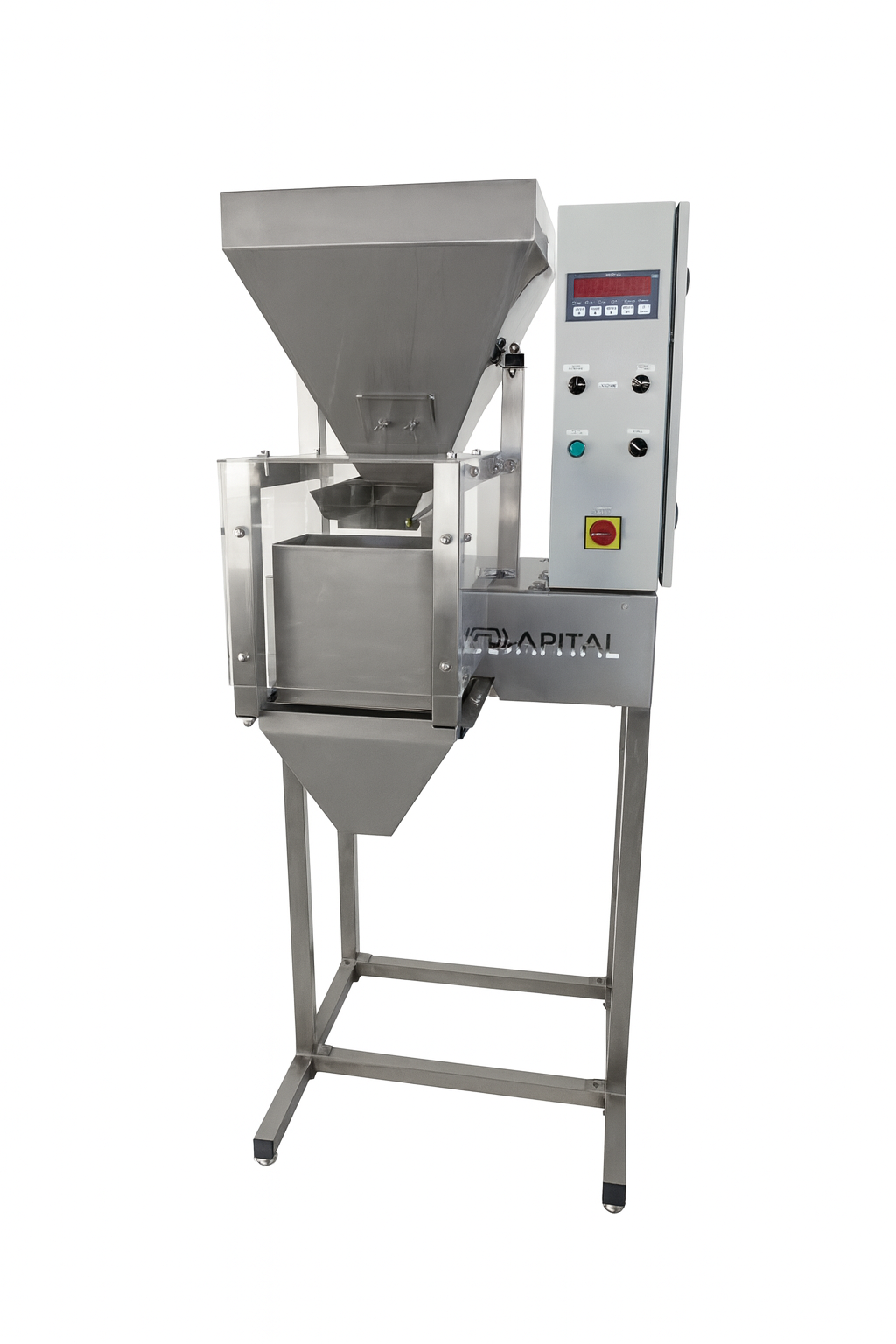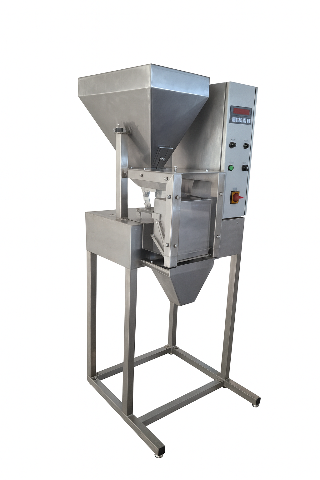 PAKERICA je odlično rješenje za precizno i učinkovito pakiranje različitih proizvoda poput orašastih plodova, mahunarki, žitarica i tjestenine. Zahvaljujući električno-pneumatskom pogonu, omogućuje stabilan i pouzdan rad s rasponom vaganja od 20 grama do 2 kilograma. Punilica radi na poluautomatskom principu, a željena masa se jednostavno postavlja putem digitalnog regulatora. Proces pakiranja odvija se u dvije brzine, pri čemu uređaj automatski usporava kada se približava zadanoj masi, čime se osigurava visoka preciznost punjenja. Masa se puni u vrećice, staklenke ili kutije jednostavnim pritiskom nožne papuče, čime se otvara prihvatna posuda s prethodno izvaganim sadržajem.