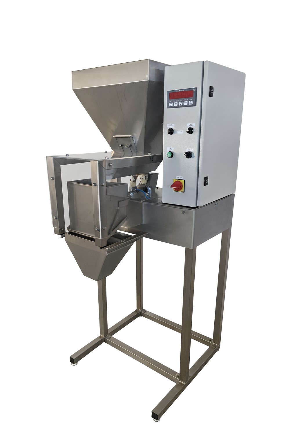 Za dodatnu fleksibilnost, punilicu je moguće povezati s više jedinica na istu prihvatnu posudu ili je integrirati s pokretnom trakom za kontinuirano punjenje. Ovaj model predstavlja idealno rješenje za proizvodne pogone koji traže pouzdan, prilagodljiv i jednostavan sustav za precizno pakiranje.