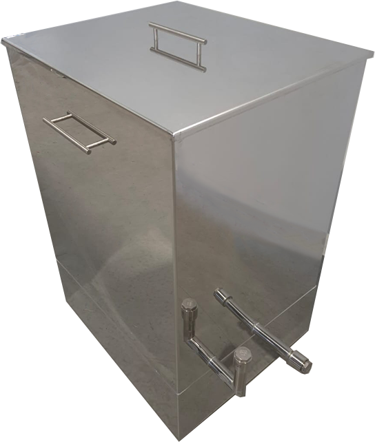 PARNI TOPIONIK VOSKA izrađen je od visokokvalitetnog poliranog inoxa debljine 1,2 mm čime je osigurana dugovječnost, otpornost na koroziju i lako održavanje. Njegovo postolje, zatvoreno s tri strane, učinkovito smanjuje toplinske gubitke i štiti od vjetra, što rezultira značajno smanjenim troškovima grijanja i većom energetskom učinkovitošću. Kompaktna i optimalno dimenzionirana konstrukcija omogućava brzo i učinkovito otapanje saća, čime se štedi vrijeme i energija. Okviri su podignuti nekoliko centimetara iznad podnice košare, što omogućava da se manje prljaju tijekom procesa otapanja, održavajući vosak čišćim. Za dodatnu prilagodbu, možete kupiti odgovarajući plinski plamenik koji je dostupan u manjoj (30x30 cm) ili većoj (40x40 cm) verziji, ovisno o vašim potrebama. Idealno rješenje za pčelare koji traže učinkovit i ekonomičan način za otapanje voska iz saća.