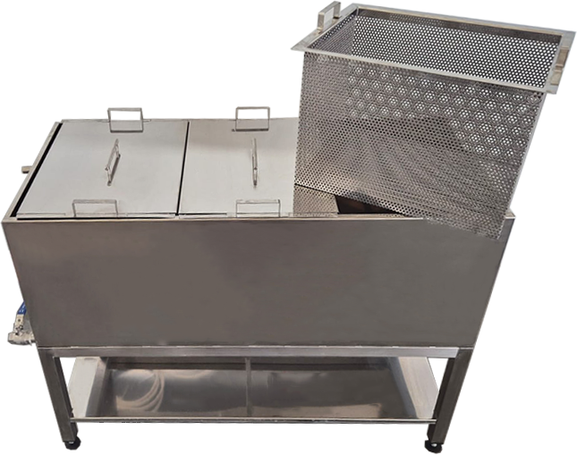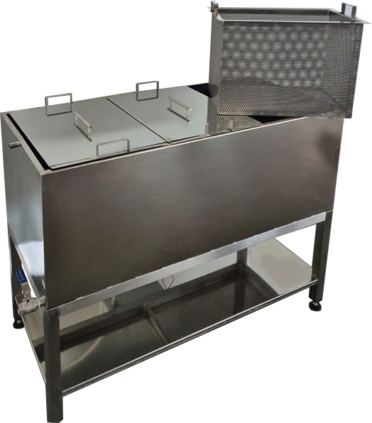 PASTERIZATOR STAKLENKI omogućuje precizno i učinkovito pasteriziranje zahvaljujući digitalnoj termoregulaciji, koja osigurava optimalne uvjete za pasterizaciju. Šaržni pasterizator ima jednostruki plašt i tri košare dimenzija 49 x 34 x 34 cm. Dimenzije uređaja sa fotografije su 125 x 65 x 92 cm, no mogu biti prilagođene prema specifičnim zahtjevima kupca, čineći ga fleksibilnim rješenjem za različite proizvodne kapacitete.
